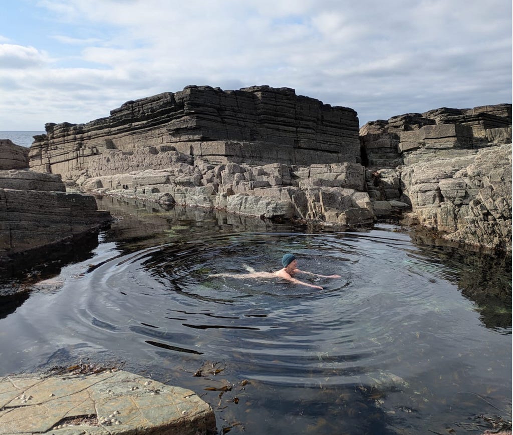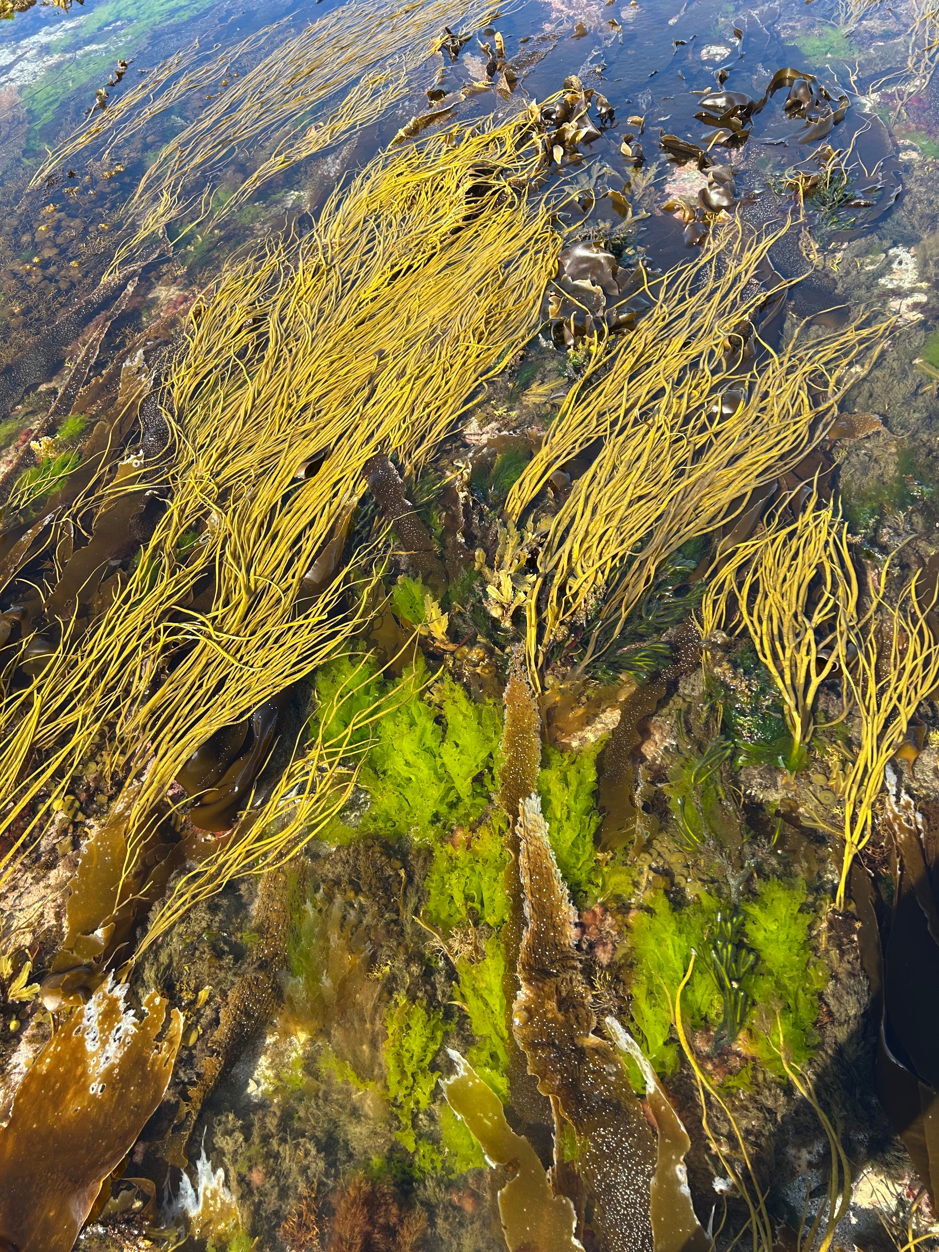 In the centre of a deep cold rockpool, I have a revelation. At the end of a warm day, I go down to the chain of pools where we swam as kids. It’s low tide, the water has warmed slightly over the afternoon. I slip in without too much hesitation, swim slowly and look around. After spending much of last year studying seaweed on Papay, I can now see what a fantastic array is here: large swaying sugar kelps submerged, giant ponytails of thongweek dancing on the surface, the walls of the pool thick with the red seaweeds including dulse and carrageen, as well as various wracks. There is even some pepper dulse - ‘the truffle of the sea’ - and I break off a piece for a nibble. It’s a phycologist’s (scientists who study algae) dream. I am aware of the great beauty and my great luck, a mermaid in my own pool.
